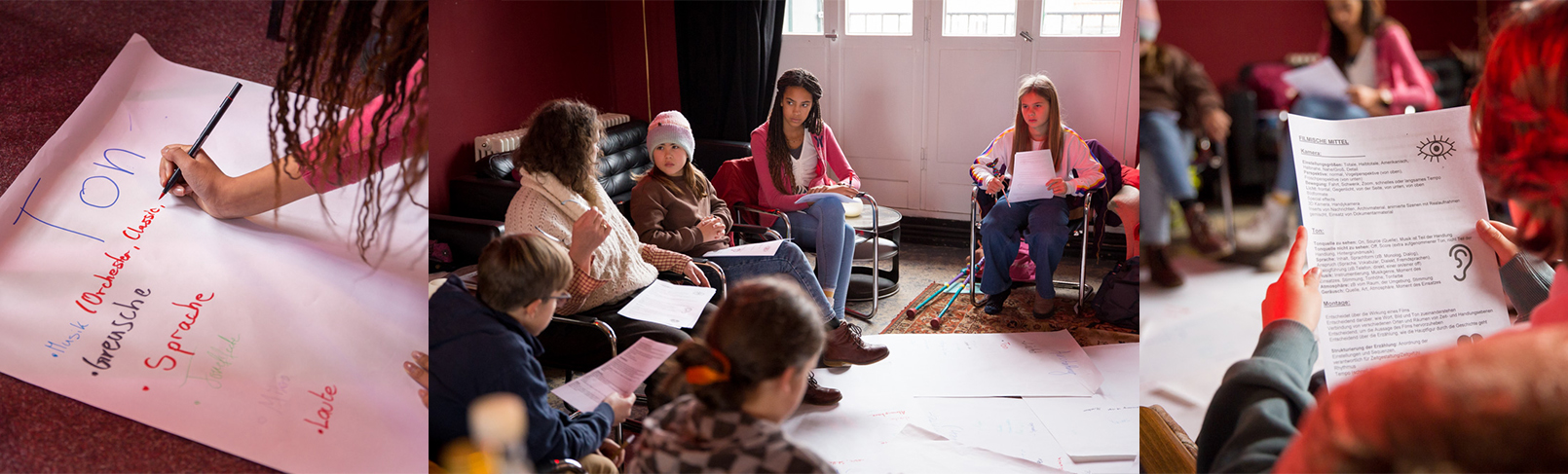 (Foto: Workshop bei der BJF-Jugend Filmjury Berlin mit Medienpädagogin Eva-Maria Schneider-Reuter © Leander Büge)