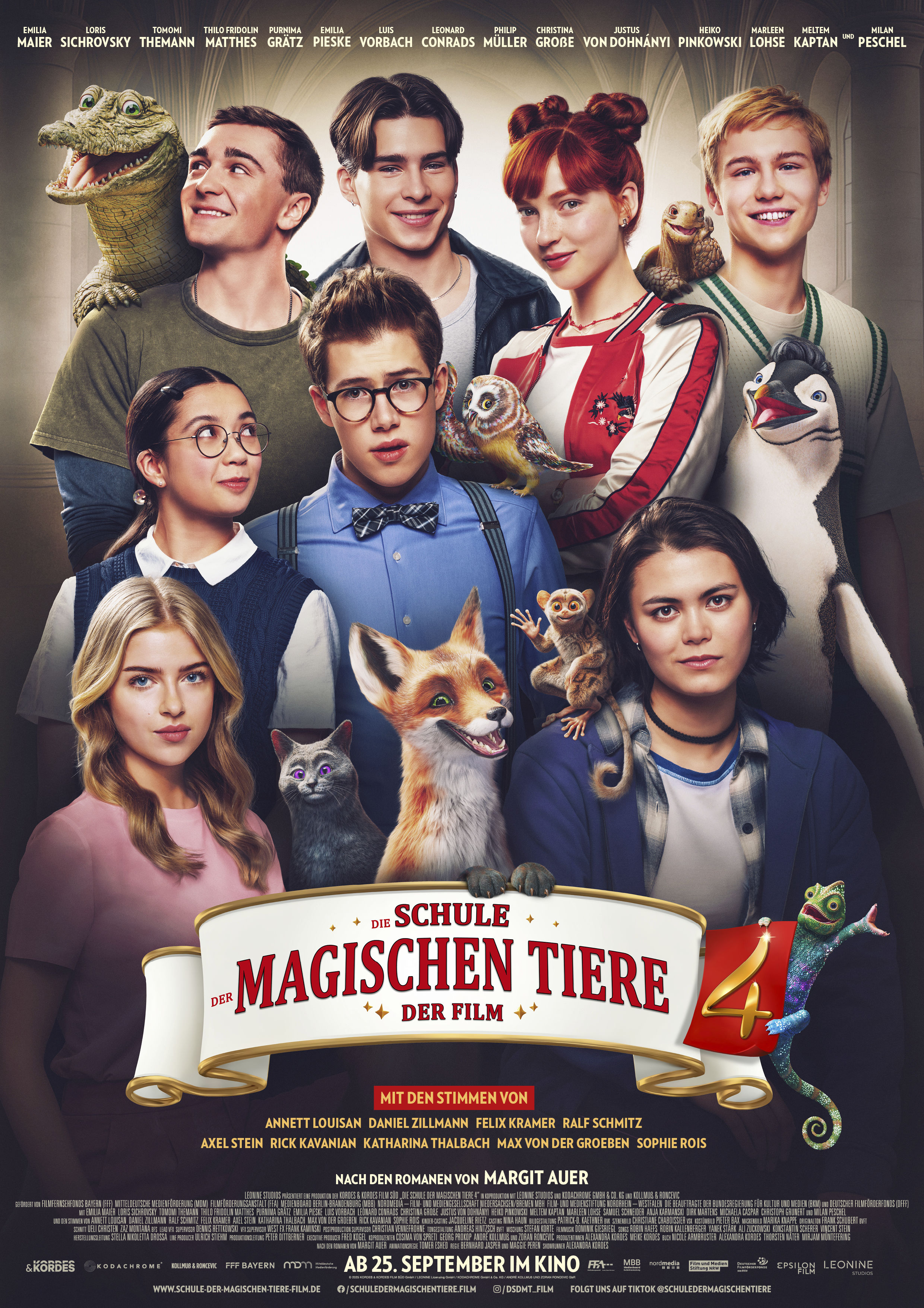 In der Fortsetzung der Spielfilmreihe DIE SCHULE DER MAGISCHEN TIERE 4 geht es um eine Klasse an der Wintersteinschule, wo die Schüler*innen Tiere als Gefährten bekommen, die sprechen können und ihnen immer beistehen. Als ihre Schule droht, geschlossen zu werden, da sie nicht genug Anmeldungen für das neue Schuljahr hat, geben die Kinder alles, um die anstehende Schulchallenge zu gewinnen, um Werbung für neue Anmeldungen zu machen. Denn für sie steht ihre magische Gemeinschaft auf dem Spiel. Währenddessen wird Ida von ihrer alten Freundin Miriam besucht, die in dieser Zeit auf die Wintersteinschule gewechselt hat. Miriams ehemalige Schule tritt auch bei der Schulchallenge an und setzt Miriam unter Druck. Auf welcher Seite steht Miriam?