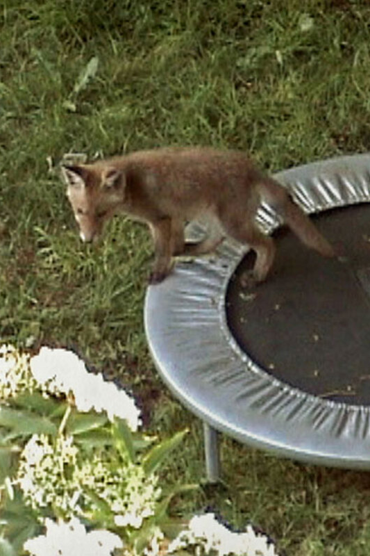 Die Füchse verhalten sich spielerisch, kindlich und neugierig. Sie probieren das Trampolin aus und springen dabei. Es sieht aus, als wenn sie versuchen Tricks zu machen.