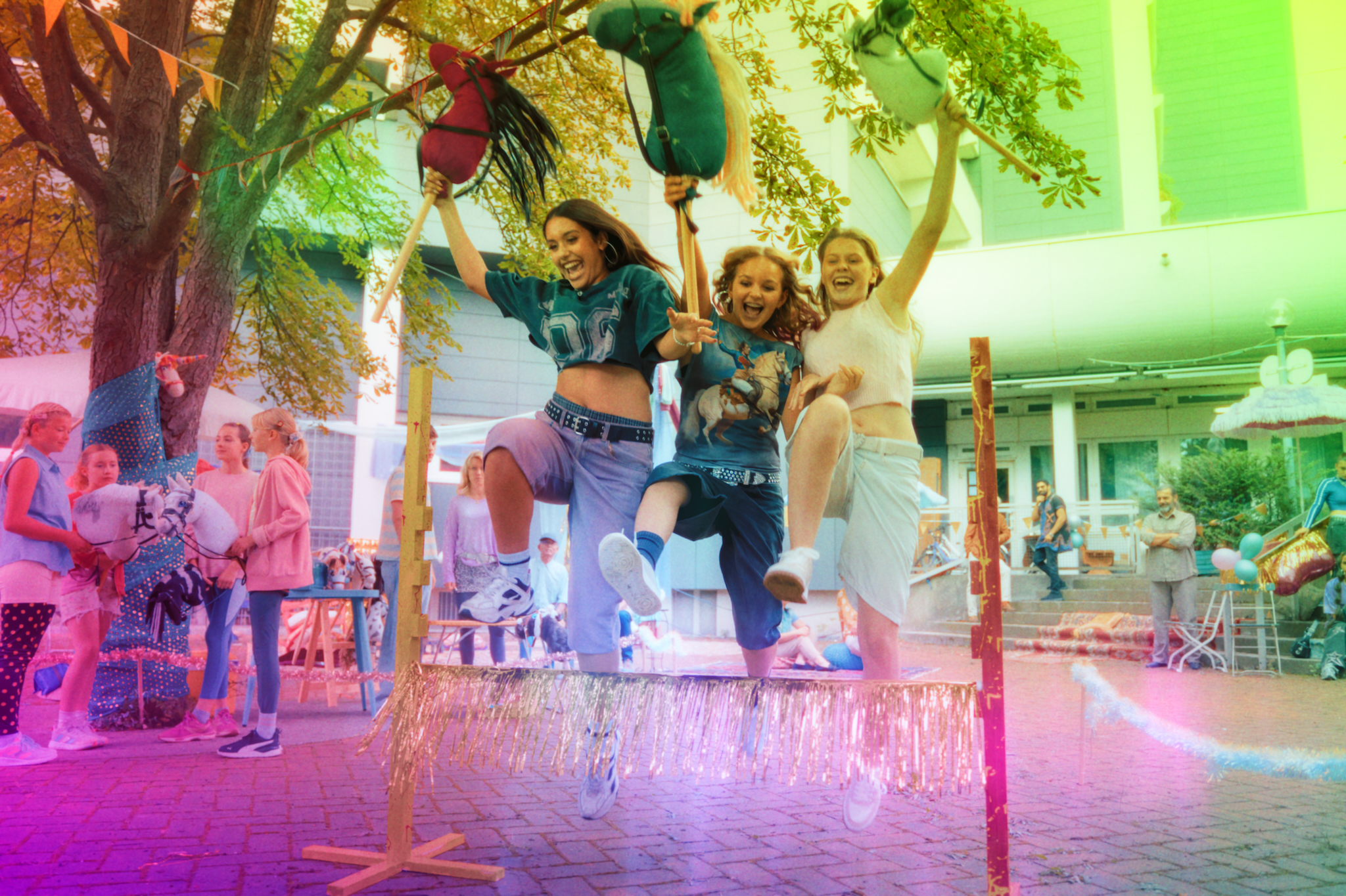Mach weiter mit dem, was dir Spaß macht und lass die anderen reden. Diese Botschaft wird nicht nur übers Hobby Horsing erzählt, sie wird in vielen Nebenhandlungen gezeigt: Ein Erwachsener spielt Luftgitarre, es wird ohne Musik getanzt und Döner ohne Fleisch setzt sich am Ende durch. Sarah ist ziemlich klar in dem, was ihr Spaß macht, und verfolgt ihr Ziel stringent. Nicht allen Charakteren fällt das so leicht. Das typische Pferdemädchen Beatrice aus gutem Haus, die Sarah beim Training hilft, muss sich erst aus den Zügeln ihrer Eltern befreien, um endlich zu wissen, was sie will.